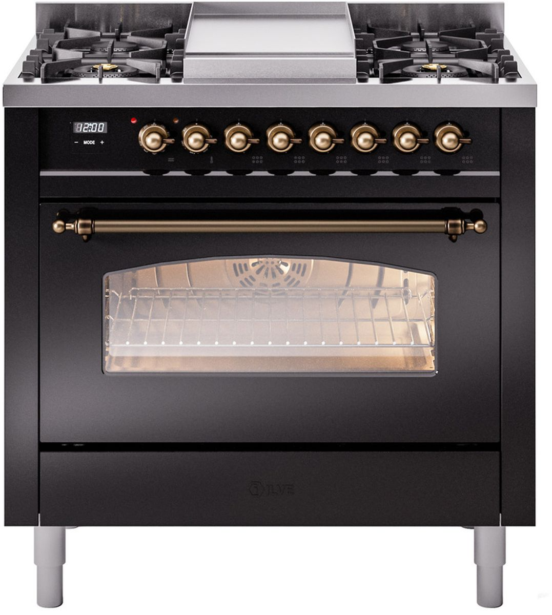 Introducing the new Nostalgie II 36" dual fuel range, a classic addition with a touch of innovation to any kitchen. This range feature sealed burners equipped with total black brass flame spreader that has a non-stick nanotechnological coating, heavy cast iron grates, 3.5 cu. ft. total oven capacity and soft closing door system.Read More