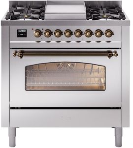 Introducing the new Nostalgie II 36" dual fuel range, a classic addition with a touch of innovation to any kitchen. This range feature sealed burners equipped with total black brass flame spreader that has a non-stick nanotechnological coating, heavy cast iron grates, 3.5 cu. ft. total oven capacity and soft closing door system.Read More