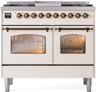 Introducing the new Nostalgie II 40" dual fuel range, a classic addition with a touch of innovation to any kitchen. This range feature sealed burners equipped with total black brass burner that has a non-stick nanotechnological coating, heavy cast iron grates, 2.3 + 2 cu. ft. dual oven capacity and soft closing door system.Read More