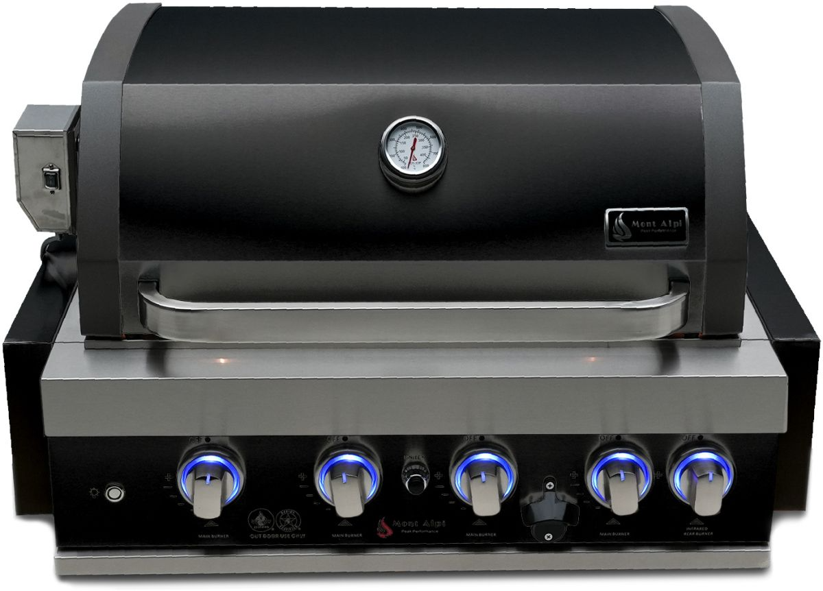 The large L brackets and back bracket provide extra tolerance for most 4 burner cut outs. The grill comes standard with LED knobs that are blue when the grill is off and red when the grill is on, there are also two bright internal lights for precision cooking, even in the dark. Be sure to check out the useful optional accessories such as the charcoal tray and griddle. Grill comes as propane ready but can be converted to Nat gas within minutes, simply buy the additional Mont Alpi Natural gas conversion kit.
