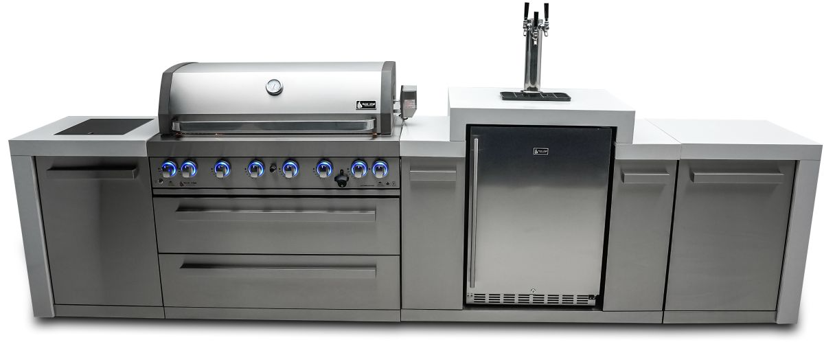 The Mont Alpi D series comes with waterfall granite which extends down the sides of the grill for easy cleaning and extra class, the unit also includes a heavy duty rotisserie kit, full size weather cover and a granite matching chopping board. The grill comes standard with LED knob lights that are blue when off and red when on and bright internal cooking lights for perfect vision and precision control. Be sure to check out the useful optional accessories such as the charcoal tray and griddle. Grill comes as propane ready but can be converted to Nat gas within minutes, simply buy the additional Mont Alpi Natural gas conversion kit.